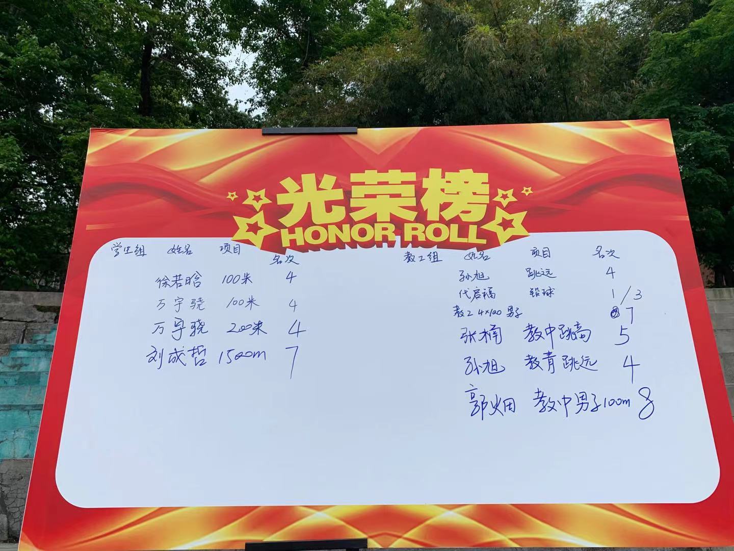 在全院师生的共同努力下,学院在运动会中取得了良好的成绩。其中,2019级徐若晗荣获女子100米赛第4名,2020级万宇骁分别荣获男子100米、200米赛第4名,2017级刘成哲荣获男子1500米赛第7名。教工组的老师们更是充分展现出了他们的全能,孙旭荣获教工青年组男子立定跳远第4名,代启福荣获教工青年组男子铅球第1名、教工中年组男子铅球第3名,张楠荣获教工中年组男子跳高第5名,郭畑荣获教工中年组男子100米第8名,郭畑、钟准、黄铭、代启福荣获教工青年组男子4×100米第7名。最终,视频网站