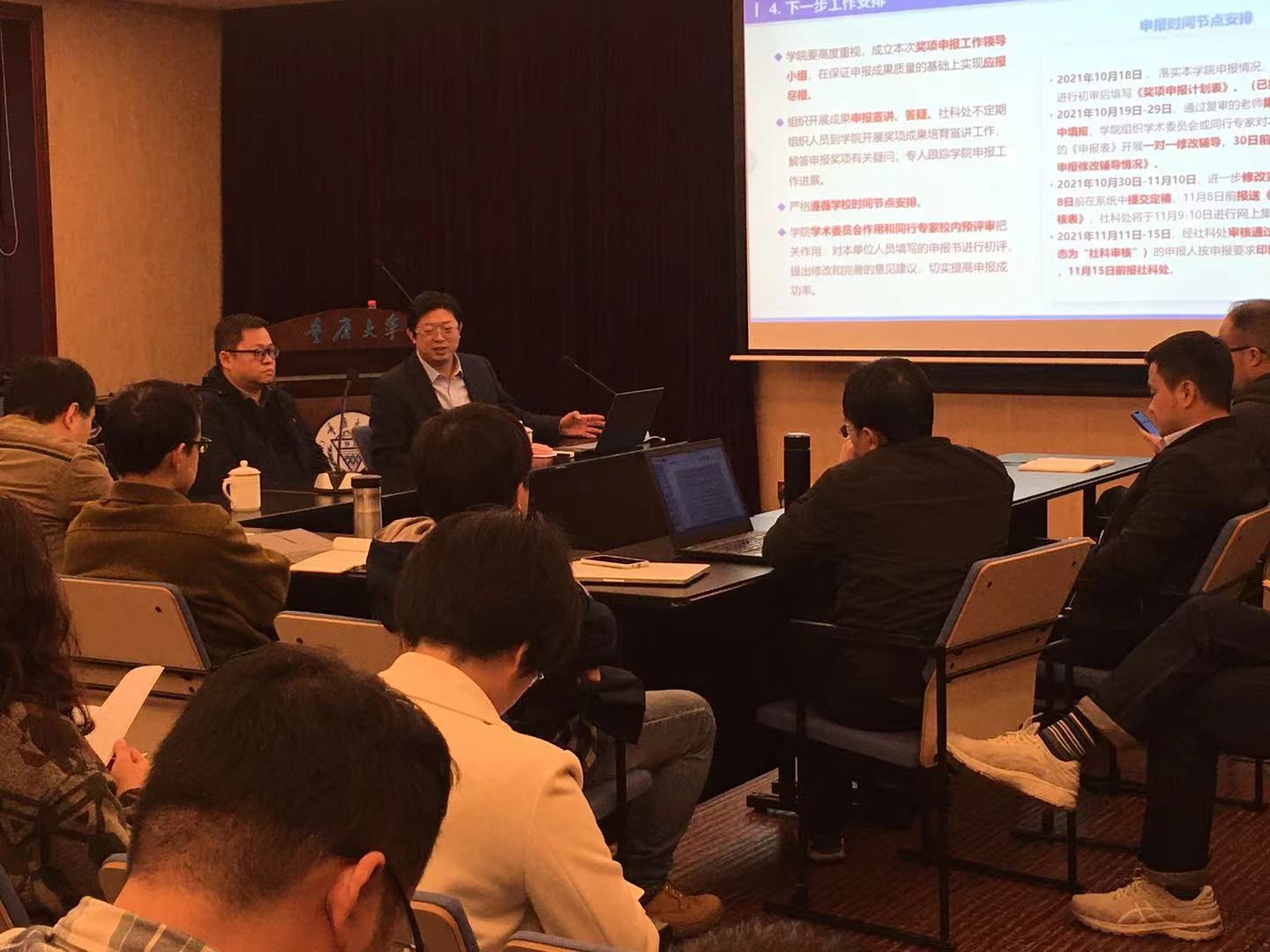 重庆市第十一次社会科学优秀成果奖、第八届重庆市发展研究奖申报在即,为提升申报质量,学校社科处处长袁文全、项目与成果办公室副主任殷铭泽于2021年10月28日中午到文字斋学术报告厅为视频网站