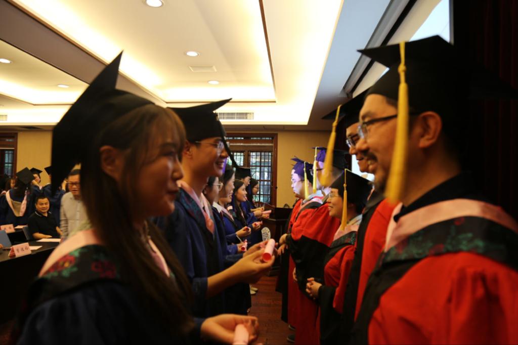 颁奖完毕后,毕业授位仪式正式开始。毕业生们依次上台,老师们为毕业生拨穗并送上真挚的勉励和祝福。