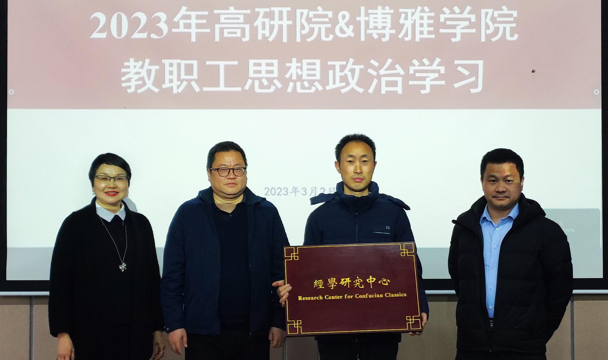 召开全院大会,正式宣布哲学系成立“古典文明与政治哲学研究中心”、“现象学与第一哲学研究中心”与“经学研究中心”,学院领导为新成立的研究中心颁发了牌匾。三个研究中心的成立,旨在结合自身优势,进一步激发创新思路与科研活力,形成多点突破,支撑学科建设,是哲学系凝练特色、踔厉发展的又一阶段性标志。