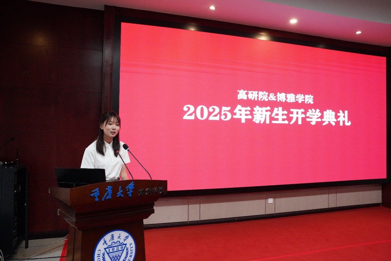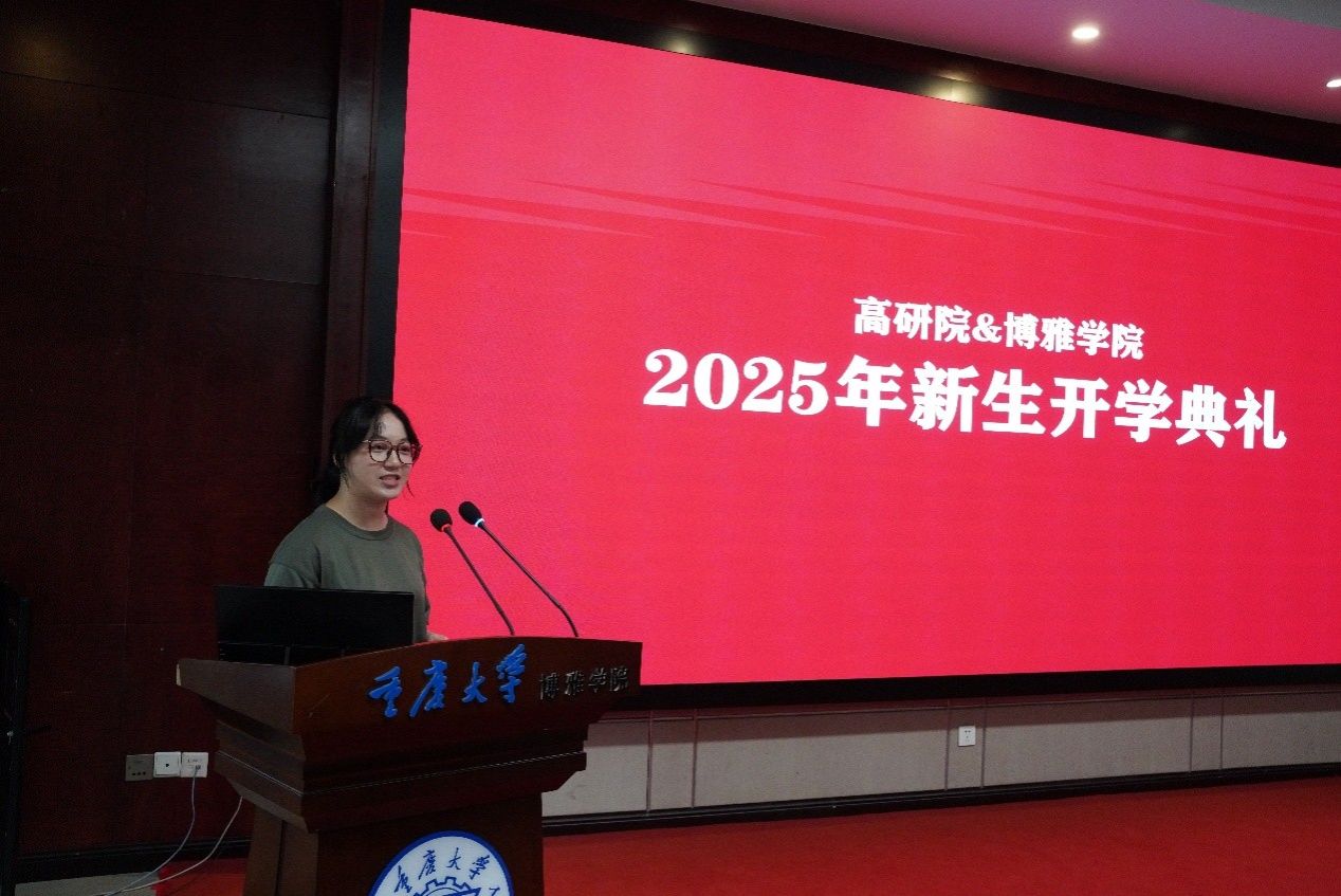本科生代表唐语涵同学以“整全、汇通、卓越、担当”为关键词,表达了新生对博雅精神的向往与践行之志。研究生代表杨盛尧同学结合自身学术探索经历,呼吁同窗以“坚韧”为舟,在变局中深耕学问,将个人成长融于时代洪流。他们的发言真挚而昂扬,展现了新一代学人的理想与担当。