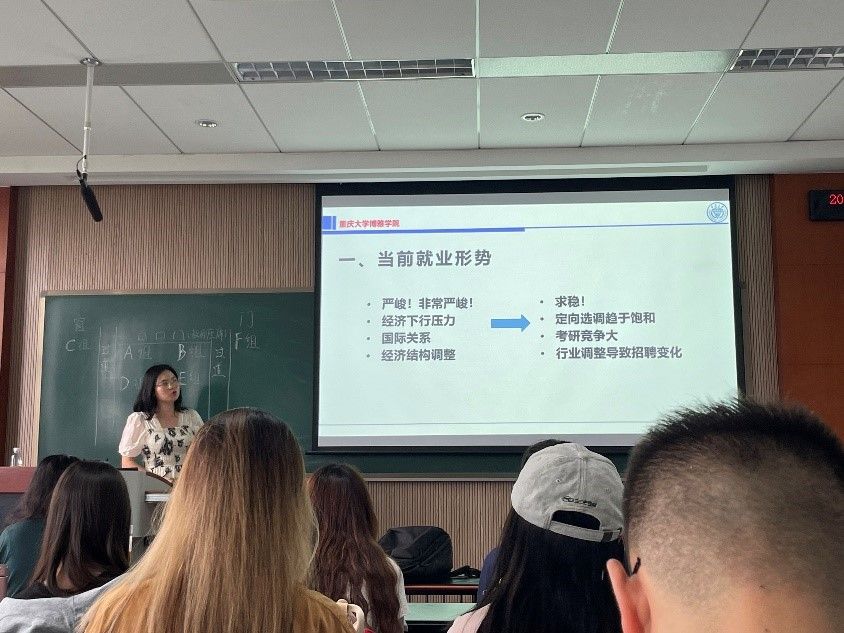 班主任斯维鼓励同学们在就业时应放宽眼界,不局限于学科专业领域,在就业中积极尝试,勇于面对挫折与失败,学会在探索中挖掘自己的特色,以期找到适合个人的职业发展路径,并祝愿同学们都能有美好的未来。