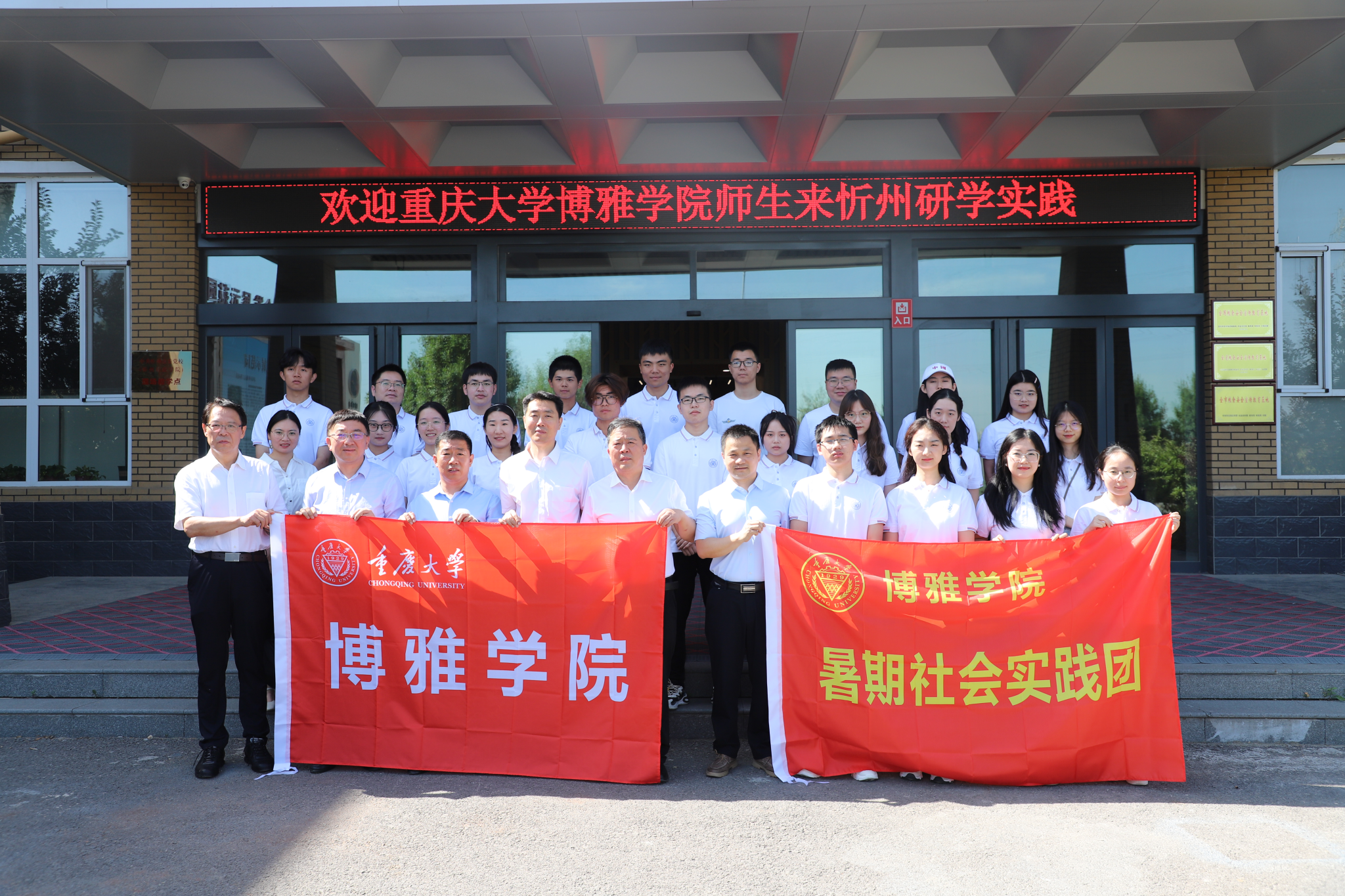 红色教育和国情教育基地、智库合作基地授牌。授牌仪式结束后忻州市领导与博雅师生亲切会谈,师生们积极分享了对忻州的初印象以及对本次研学的期待。