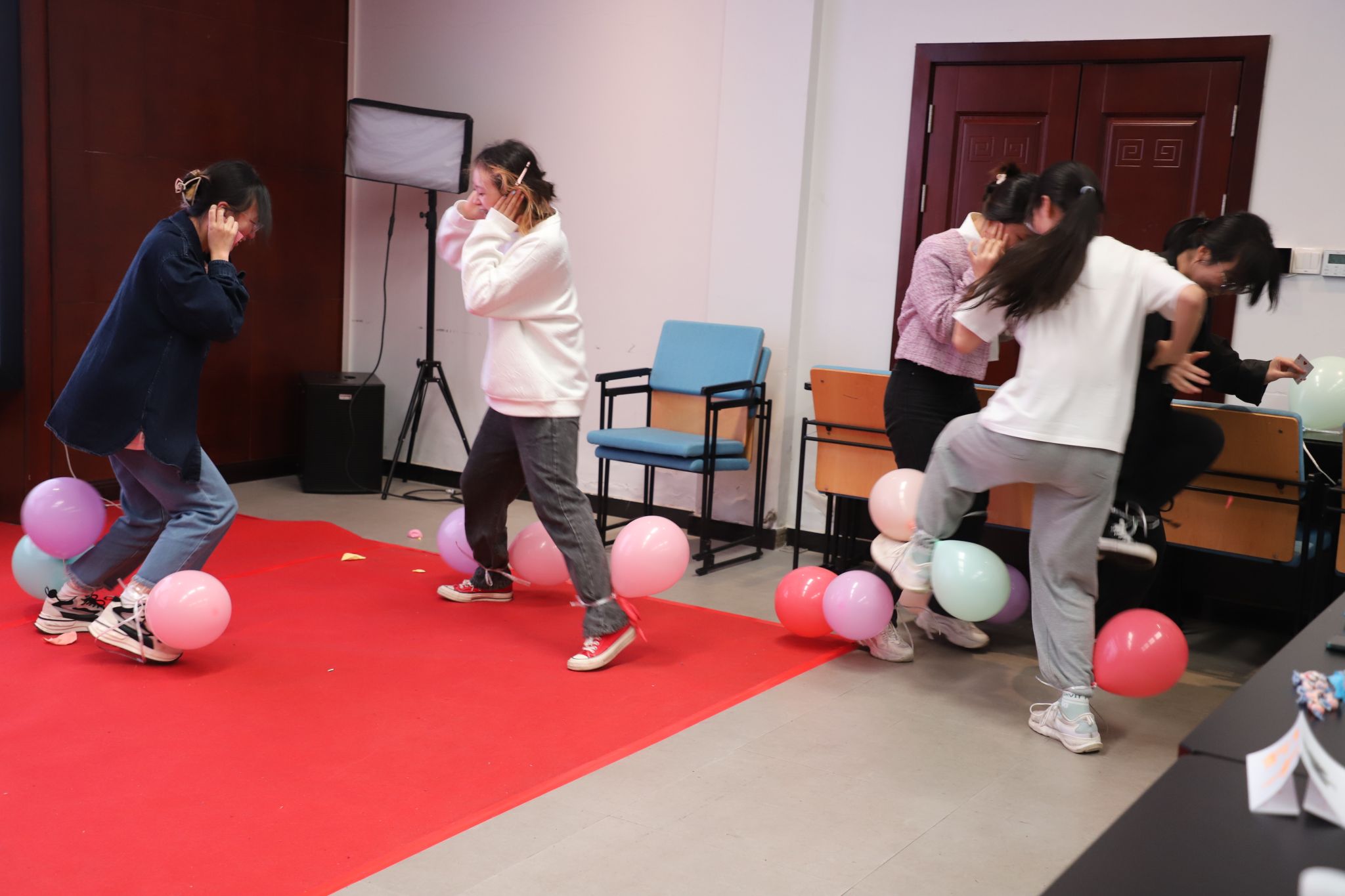 为使本次活动达到预期目的,本次团建活动设置了党史知识竞答、经验交流、保卫球球和你画我猜等环节。团建活动从“你画我猜”热身小游戏开始,同学们分组参加比赛,每组派一名同学面向大屏幕,根据屏幕内容不出声比划,剩余两名同学猜答案。在组员生动形象的比划下,其他人快速反应,紧张刺激、争分夺秒的游戏让同学们更加熟络彼此,促进了团队的合作氛围。