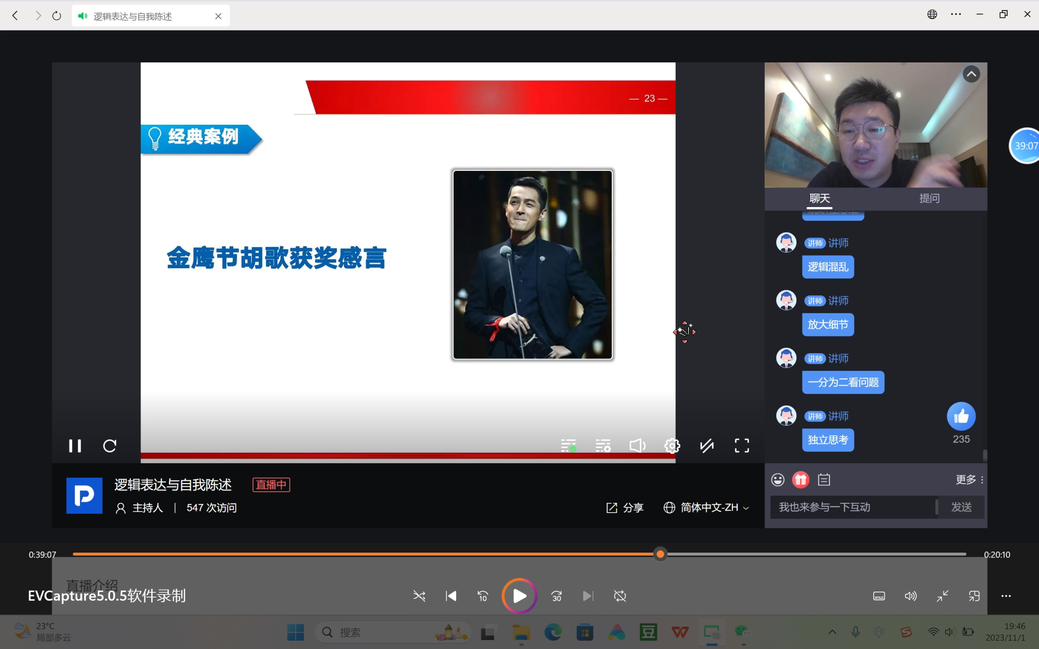 让思维扎深根基,令语言成为艺术。为帮助同学们进一步增强沟通能力、培养逻辑思维,在当下的校园生活与未来的求职生涯中提升核心竞争力,2023年11月1日晚19:00,由视频网站