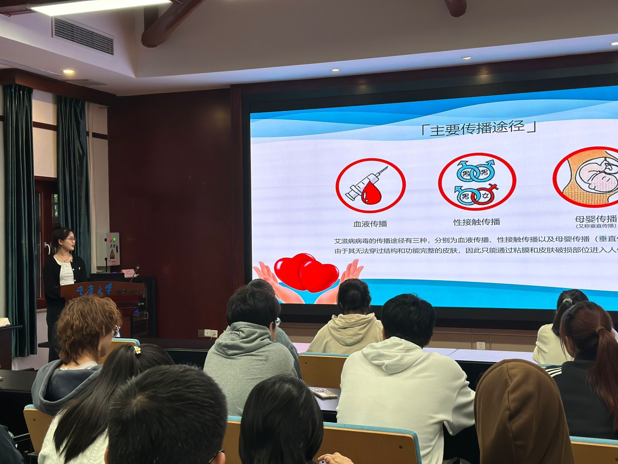 2023级本科生于10月19日在博雅书院报告厅开展以“爱青春,远离‘艾’”为主题的主题班会活动。本次主题班会由班长侯佳莹、刘思源共同主持,2023级班主任赵耀文、罗勇出席,2023级全体本科生参加本次活动。