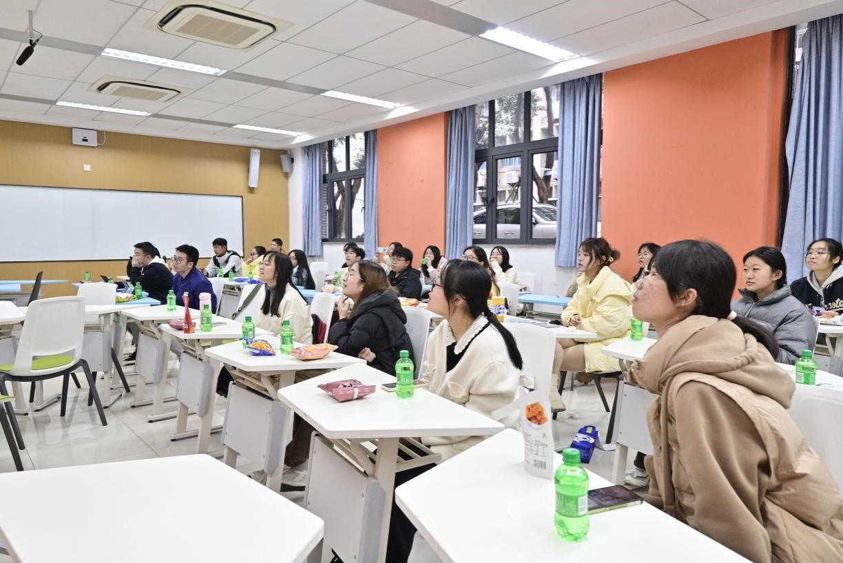 第二个互动环节是“你来比划我来猜”,全班同学分成了六个小组,每个小组派一名代表上台,只能通过肢体动作来表达所看到的词汇,其他小组成员需要在没有语言提示的情况下猜测该词,这是对大家的肢体语言表达能力与联想能力的全面锻炼,也是生活在共同时代的我们探索共同的时代记忆的良好平台。同学们幽默有趣的表达方式引得全场笑声频频,大家都沉浸在欢乐的氛围中,将烦恼也都抛在脑后。