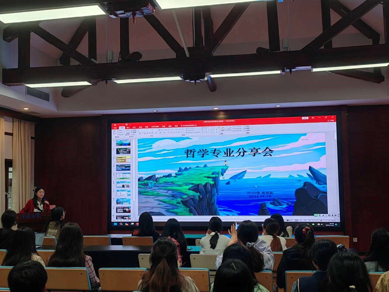 2022级1班于4月16日下午在博雅书院报告厅举办了“专业分流经验分享会”,活动邀请了文史哲三个专业不同年级的学姐到场进行经验分享,全体同学积极参与,班主任肖馨瑶也出席了此次活动。