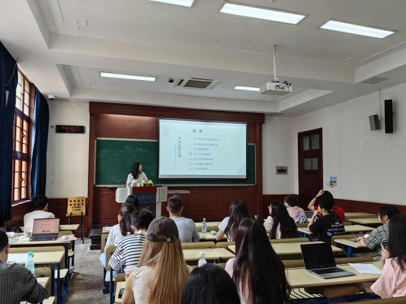 于2024年6月7日在五教110教室开展“青春不散场”2024届本科生毕业相关事宜培训会。本次活动由辅导员高宏佳老师主持,2024届本科生参加。