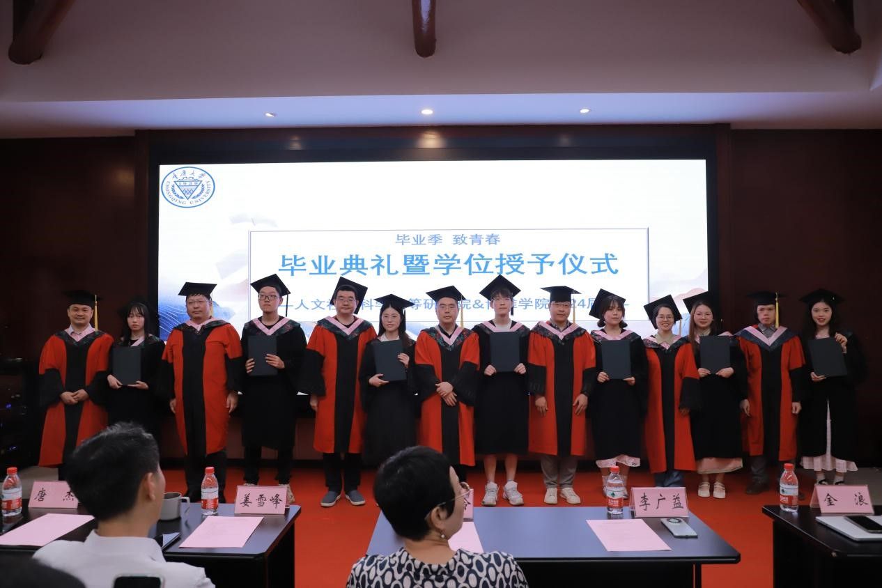 师生代表发言过后,由学院党委副书记姜雪峰宣读学院2024届优秀学位论文和优秀学生名单并进行颁奖,鼓励他们在未来的人生旅程中持续追求卓越。最后,毕业授位仪式开始,毕业生们身着学位服依次上台,由老师们为其拨穗并送上真挚勉励与祝福。典礼最后,全体同学齐唱校歌,这不仅是对母校的深切怀恋,更是对未来奋斗的铮铮宣言。