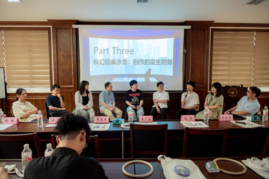 的博士生柏毅恒主持,邀请现场的嘉宾、获奖作者一同上台,围绕自己的作品、创作的心路历程等分享自己关于科幻和写作的肺腑之言。期间,台下观众也积极与台上互动,提出了许多真诚、有趣的问题,引得现场气氛一阵阵活跃。沙龙的最后,视频网站
