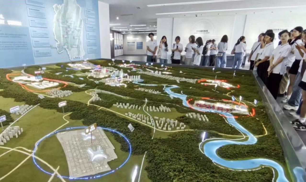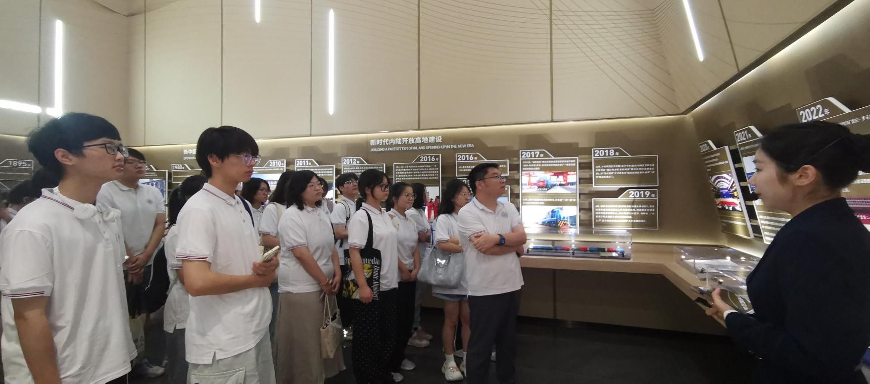 2023级全体同学来到重庆内陆国际物流枢纽展示中心学习调研。
