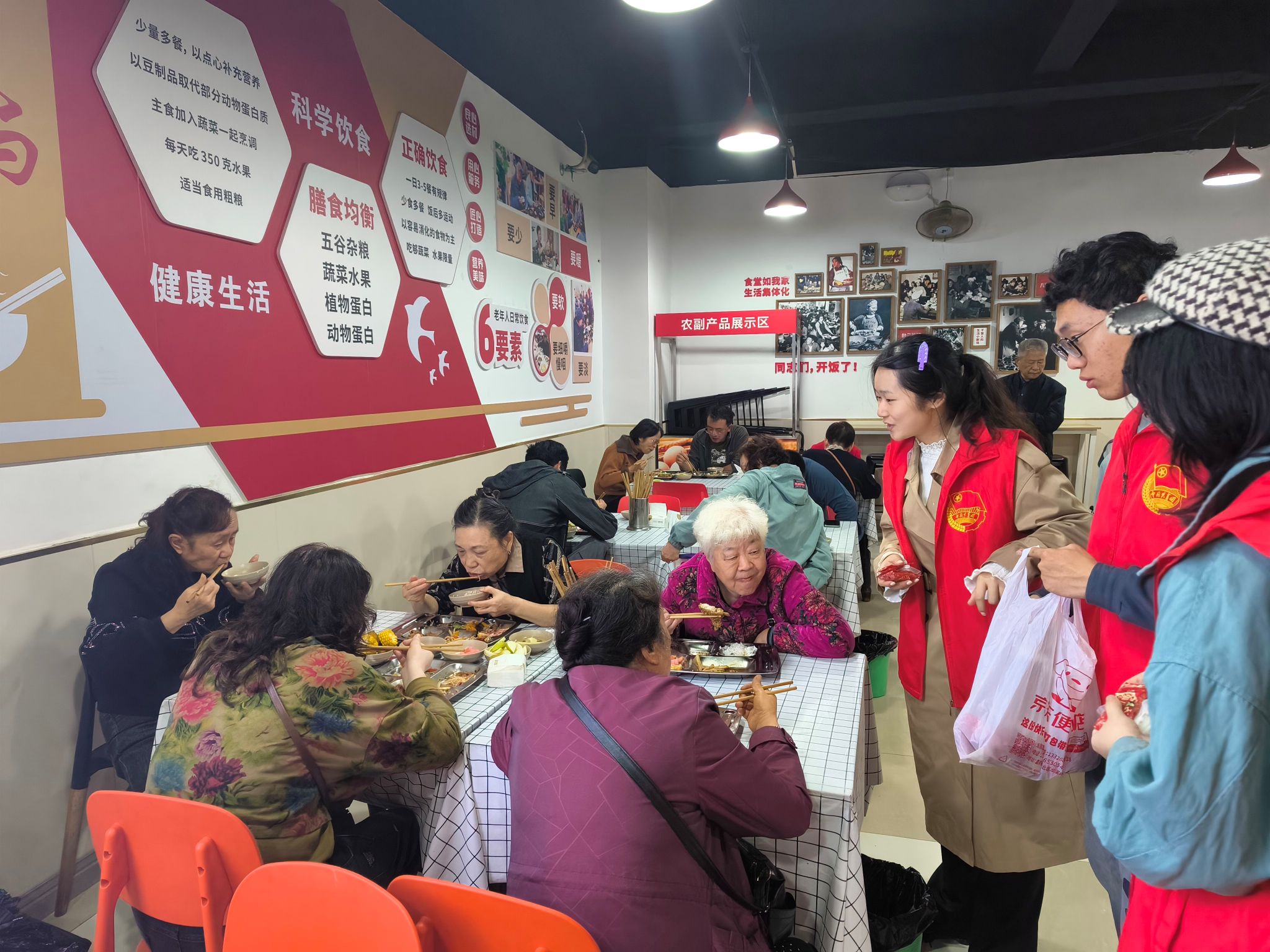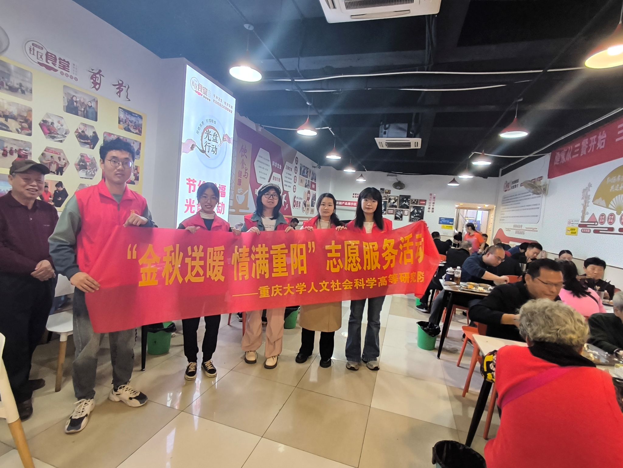 爱心社志愿者与沙正街社区食堂工作人员携手合作,成功举办了主题为“金秋送暖,情满重阳”的公益活动,为社区的老年人带去了温暖和欢乐。本次活动在沙正街社区食堂举行,吸引了近30名老年人参与。志愿者们通过一系列精心策划的活动内容,为老年人献上了一个充满关爱与欢笑的重阳节。