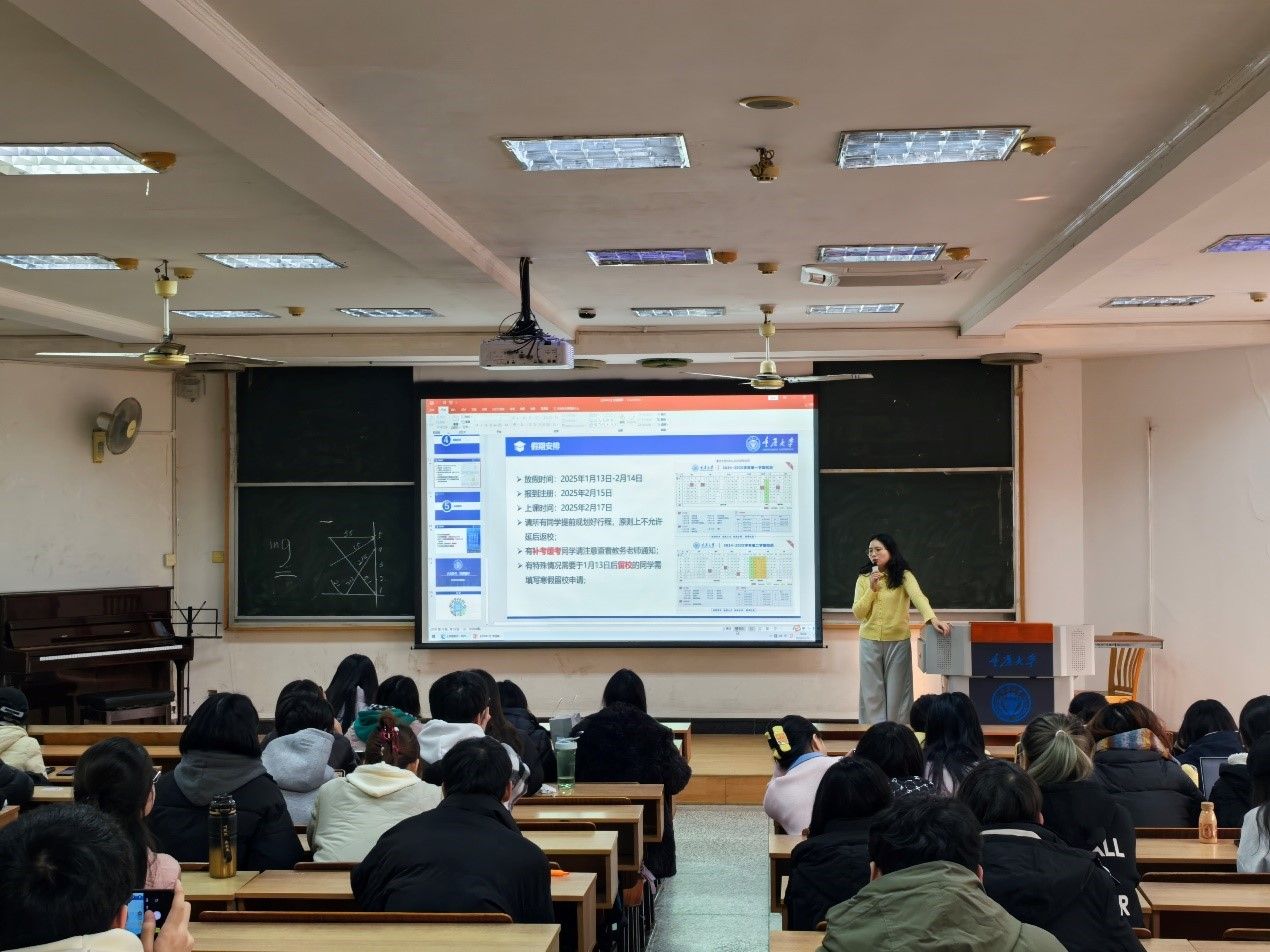 高宏佳提醒寒假相关安排,告知同学们应当提前规划行程,提醒同学们在享受假期的同时要注意保护个人安全。面对即将来临的期末考试,她着重强调同学们认真备考,诚信考试的重要性,并且提醒同学们应按要求携带个人证件参加考试。