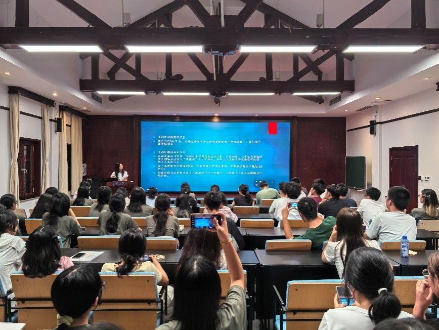 在学业规划环节,本科教务韩蕾老师系统解读了学生培养方案,详细介绍了公共基础、专业课程、实践教学与个性化培养四大模块的内容与要求。学院实施学业导师制,在为新生配备导师的基础上,还将在专业分流后提供导师调整机会,全程护航学生成长。韩老师还明确了学院信息发布渠道,确保新生及时掌握学业动态。