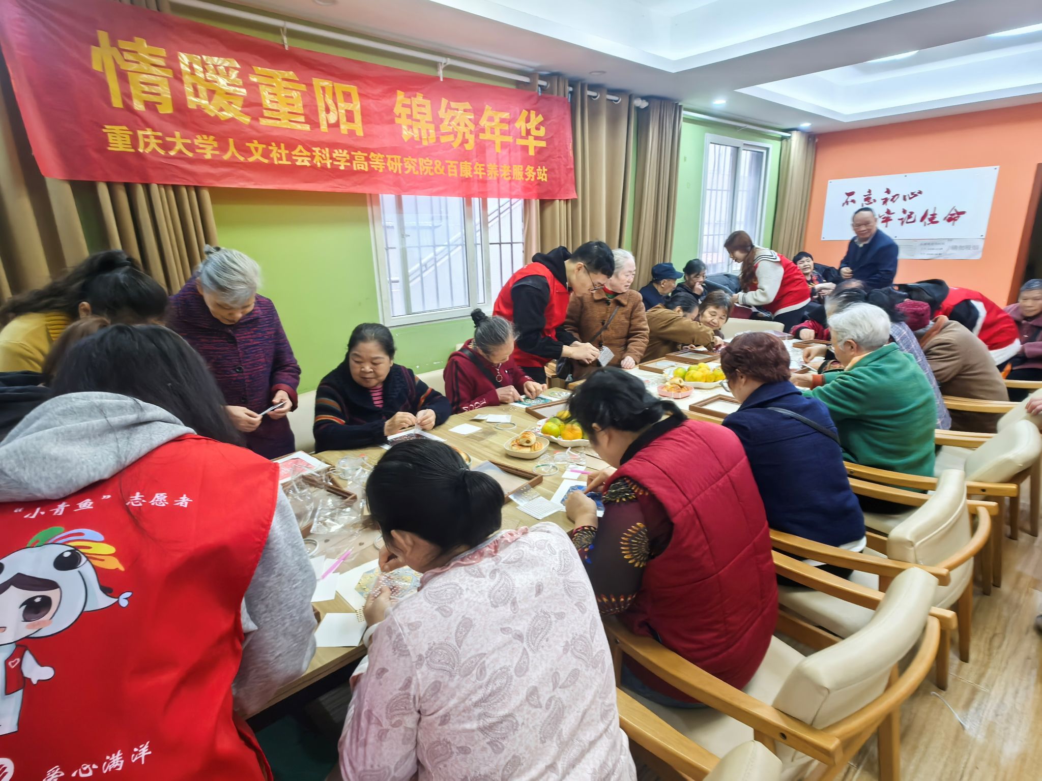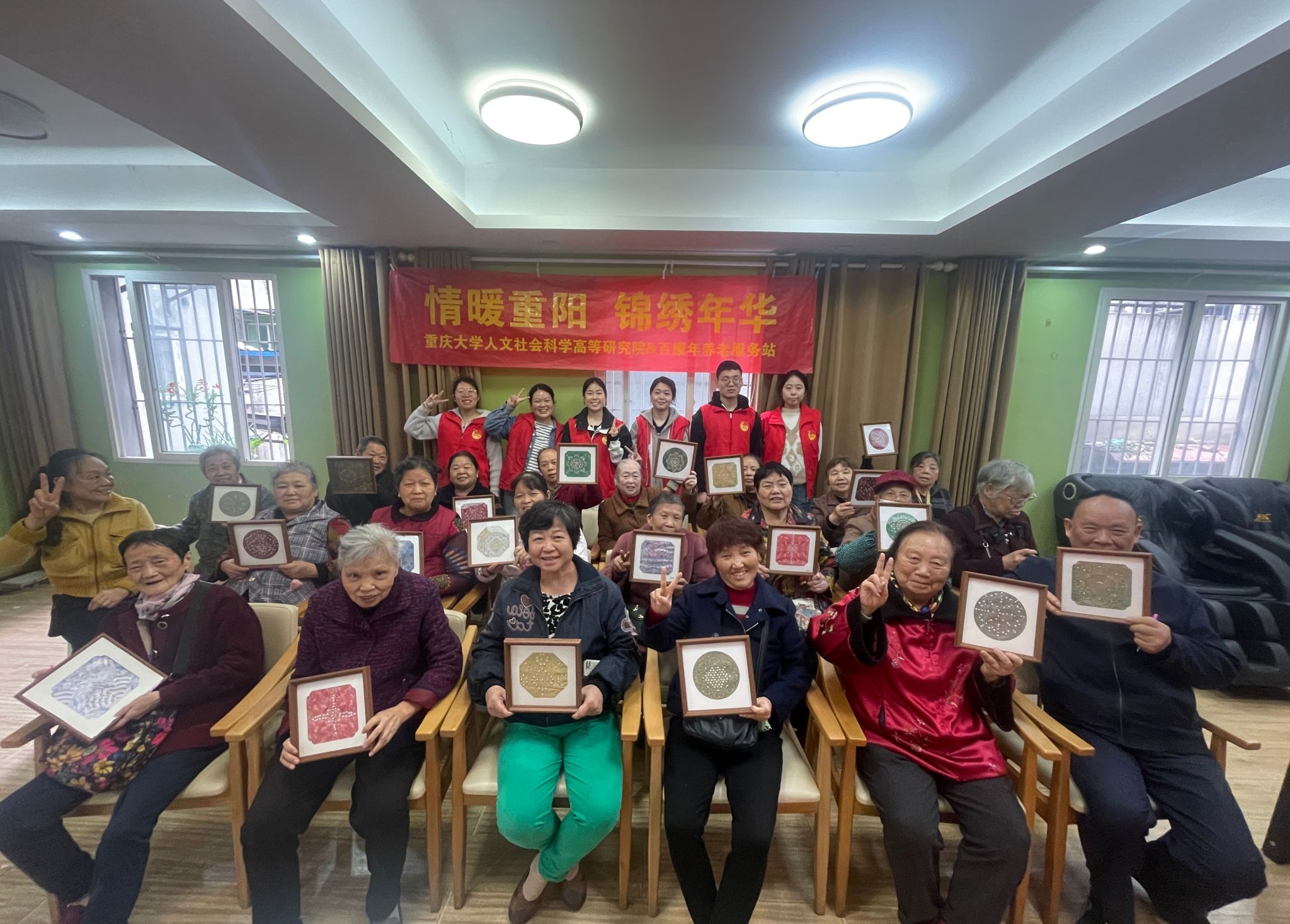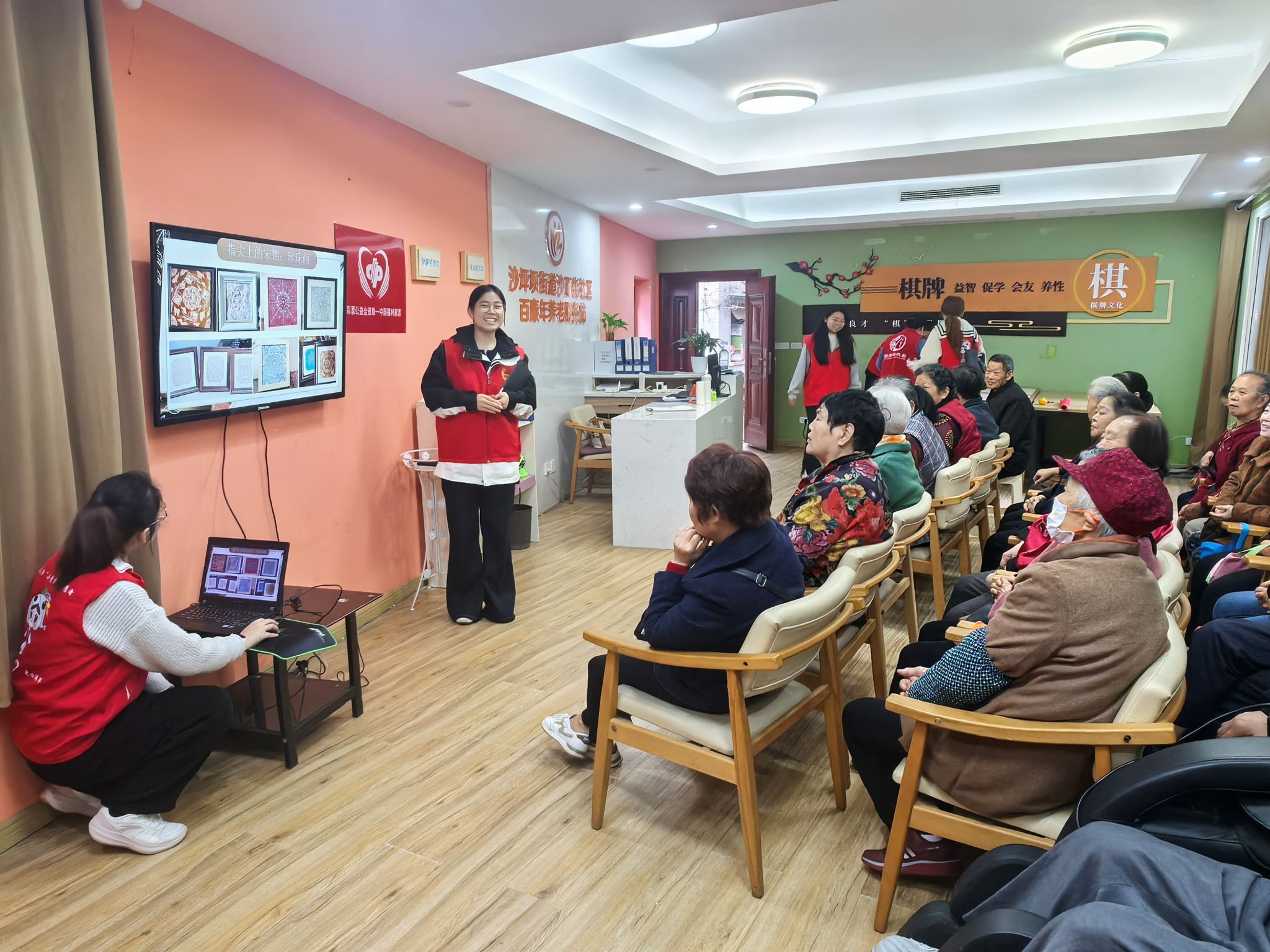 爱心社的志愿者们带着满满的诚意与温暖,走进沙坪坝区百康年养老服务站,举办了一场别开生面的"情暖重阳,锦绣年华"主题敬老活动。在这个寓意深远的日子里,志愿者们以国家级非物质文化遗产——宋锦为载体,与长者们共同度过了一个充满文化底蕴与温情陪伴的美好时光。