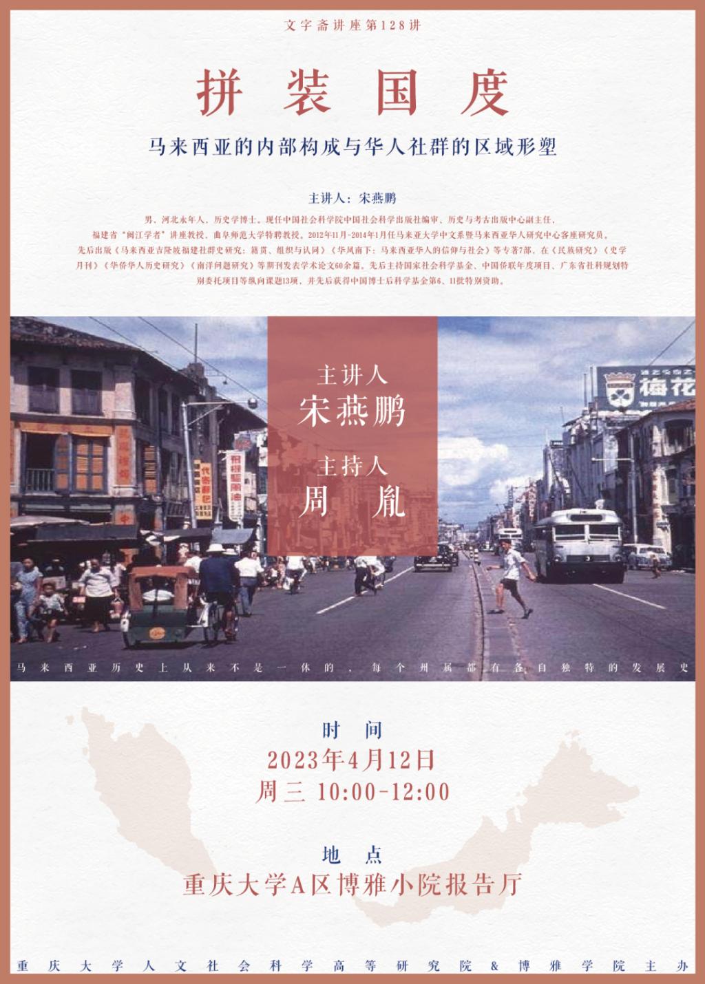 1963年马来亚联合邦与砂拉越、沙巴、新加坡组成马来西亚联邦,两年后新加坡退出。马来(西)亚历史上从来不是一体的,每个州属都有各自独特的发展史。随着英殖民在各地的推进,华人大量移民,华人社会的形塑途径因区域的不同而大相径庭。针对现有对马来西亚研究的板块化、模式化的倾向,本讲座提倡区域史的研究方法,以各个州属乃至县份为研究范围,以使对马来西亚的研究全面而深入。