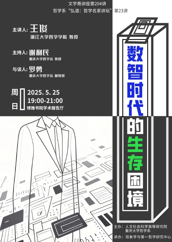 extend1 【文字斋讲座】数智时代的生存困境 extend2 主讲人:王俊(浙江大学哲学学院教授)