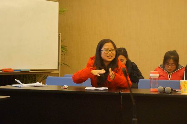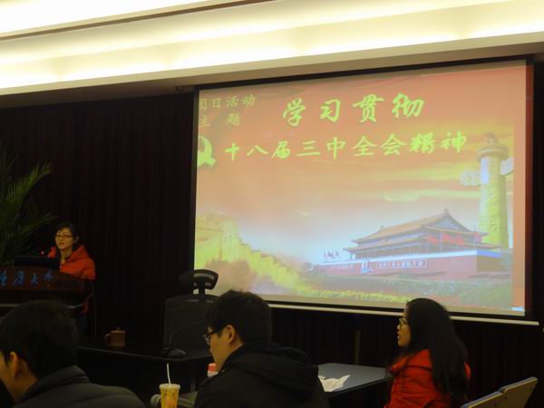 在召开团日活动之前,同学们花了一周时间认真学习十八届三中全会的精神和相关决议,并以小组形式集中有代表性的观点,从“开放单独二胎”计生政策到新的退休政策,从教育体制改革和生态保护措施,乃至经济领域的改革,小组代表们都畅所欲言,纷纷表达自己对国家、社会热点问题的热切关注,这种关注不仅仅出于“天下兴亡、匹夫有责”的道义担当,也出于对自身个体未来发展的深刻考量,同学们充分结合自身实际谈问题,从中体会国家大政方针对我们每一个公民现状和未来的影响。团日活动现场气氛异常热烈,代表们的发言滔滔不绝,以至主持人多次提醒发言时间,陈颀老师一边听取同学们的发言,一边点头、微笑表示赞许,并对每一小组的观点进行了专业的分析和点评,使同学们对各自所关注的问题有了更深入的了解。