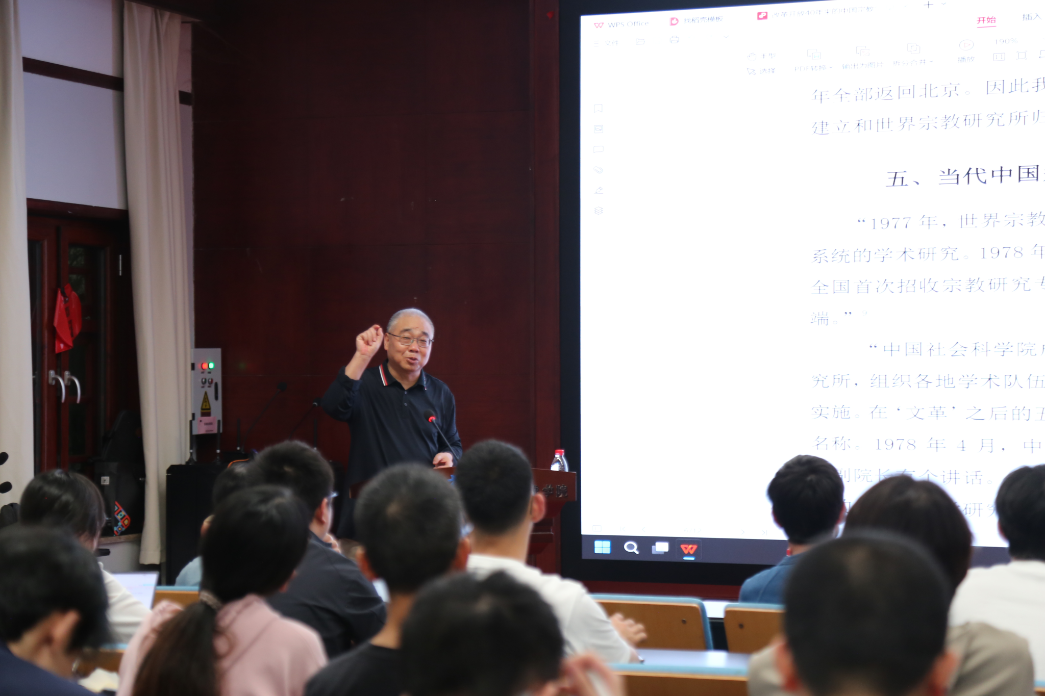 李建欣教授总结,回顾四十年来宗教学的发展历程,相较于宗教哲学与宗教史研究,宗教社会科学领域的研究尚显薄弱。习近平总书记在2017年5月17日《在哲学社会科学工作座谈会上的讲话》 中将宗教学与其他 10 个学科并列为构建中国特色哲学社会科学的支撑学科,预示着新时代宗教学研究尤其是宗教社会科学领域研究的发展契机。在交流环节中,现场师生就宗教中国化、儒家的宗教性等问题与李建欣教授进行了深入探讨。