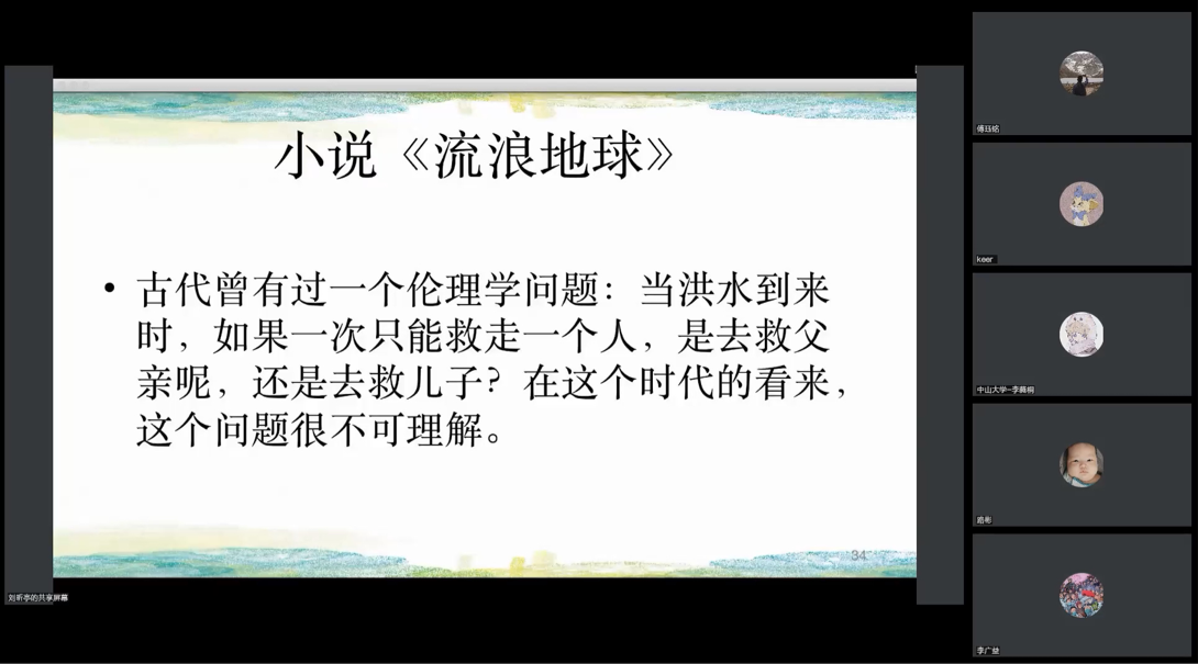 第三部分中,刘昕亭老师重点分析了《流浪地球》对传统人文困境的突破。齐泽克认为,当代西方伦理学正陷入《苏菲的选择》中的两难困境,即被迫从两者中选择一个,而刘慈欣在《流浪地球》中通过拒绝选择的方式突破了传统人文主义的选择。《流浪地球》将后人类想象置于一个充满悖论的危机叙事中,凸显了刘慈欣的后人类追问:极端灾变下,人如何作为人而存在?这一去道德的末日叙事,恰巧与数字时代西方正在进行的伦理转向相符合,呼应了科技挑战下的人文主义危机。对于正在陷入困境的西方世界来说,刘慈欣显示出来自东方的救赎力量。