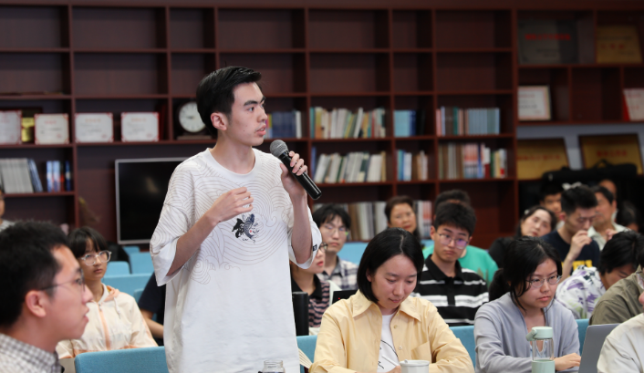 在交流环节,刘成纪老师细致解答了校内外同学的提问,分别探讨了汉代对《楚辞》的建构、中国经典阐释的跨文化交流、“中国美学”的再历史化等问题。最后,刘成纪老师认为,做学术研究要最大程度地回到历史本身,尽可能地消解历史研究的前见,只有先做好了“照着讲”,才能谈“接着讲”。讲座在热烈的讨论与掌声中圆满结束。