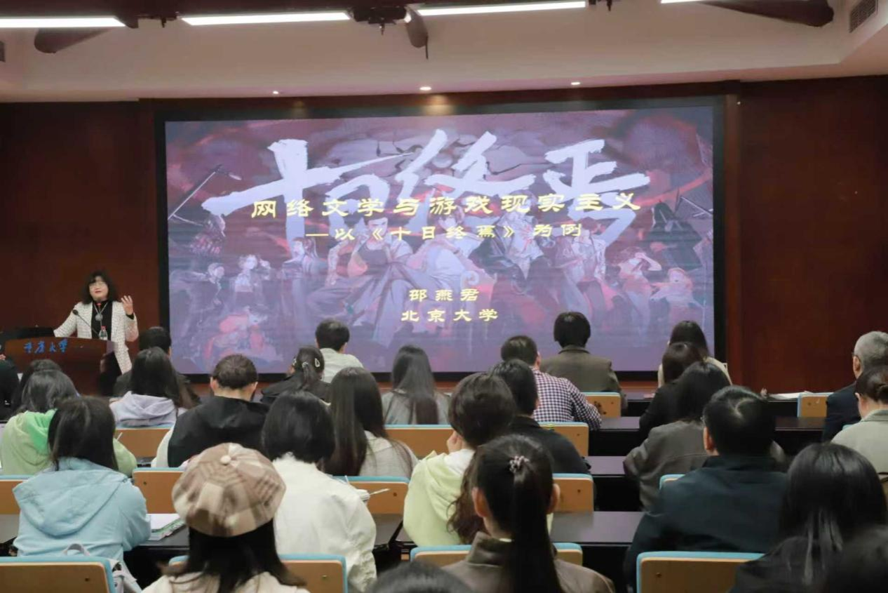 创意写作基地承办,北京大学邵燕君教授主讲,以 “网络文学与游戏现实主义” 为主题,对《十日终焉》代表的网络文学新变进行研讨。讲座由视频网站