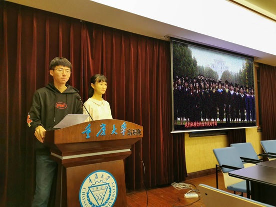 办校历程与各个历史时期成就的资料,表达了对祖国和母校的祝福。陈航天说,此时此刻的中国比历史上任何一个时期都更接近中华民族伟大复兴的中国梦,希望我们作为炎黄子孙可以勇担当,筑强国。李依晓说,很幸运作为重大学子生活在这个时代,这是个美好的时代,发展迅速的时代,国家为我们提供了最好的资源和机会,也希望自己可以把握住这个机会,为重大争光,为社会主义建设添砖加瓦。