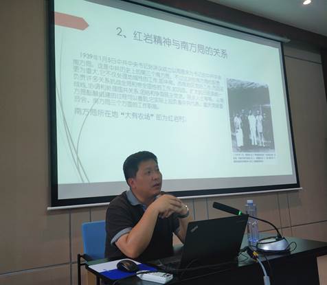 最后,钱锋副教授作《中国革命视野中的红岩往事》主题报告。钱锋老师是重庆市抗战大后方历史文化研究工程专家组成员,以其扎实的史料功底和对于党领导的中国革命的热切情怀,梳理了被重庆市委概括为“爱国、奋斗、团结、奉献”的红岩精神,从“红岩”精神和《红岩》小说作品切入,为同学们解读了《红岩》作品背景的真实史实及我党地下工作者对中国革命做出的贡献。针对党课培训,钱锋老师特别对中国共产党早期的组织工作进行了全面的解说,帮助同学们了解中国共产党早期宣传与文化、统战与联络、情报工作、青年与妇女工作等方面的贡献与传统,并且引导同学们思考是什么支撑着他们在革命年代的工作:并不是物质的回报,而是崇高的精神和坚定的信仰的支撑。