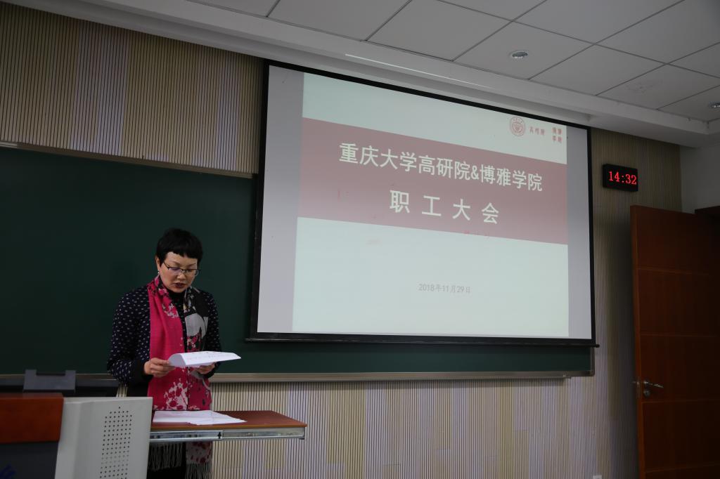 于2018年11月29日下午2:30召开了全院教职工大会,学习习近平总书记在全国教育大会上的重要讲话,会议由视频网站