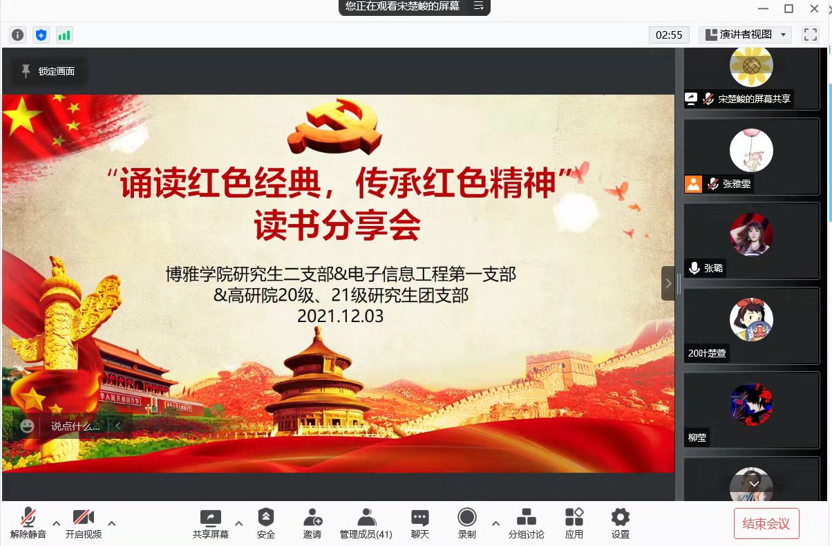 2020级、2021级硕士研究生团支部,于2021年12月3日下午,以“腾讯会议”为平台,开展“诵读红色经典,传承红色精神”的线上主题党日活动。本次活动由视频网站