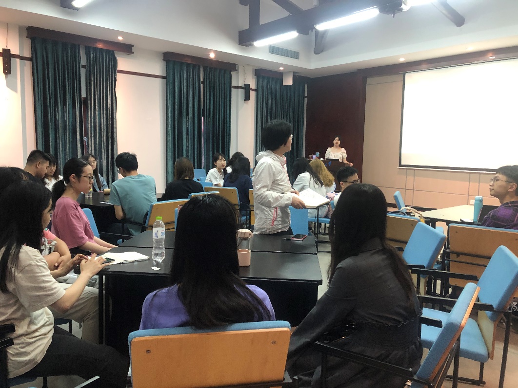 接下来,为了细化、深化成员们的认知,学习重点经由游戏词汇聚焦到了“核潜艇研制”上。主讲人重点介绍了我国核潜艇事业发展艰苦而辉煌的历程,带领我们走近“核潜艇之父”黄旭华“赫赫而无名”的一生。在这一环节中,四个小组分别选出了一位成员,上台对黄旭华与母亲诀别的感人场面进行真情流露的现场演绎。看过了视频和同学们的表演,大家对工匠精神有了更为深刻的感受。