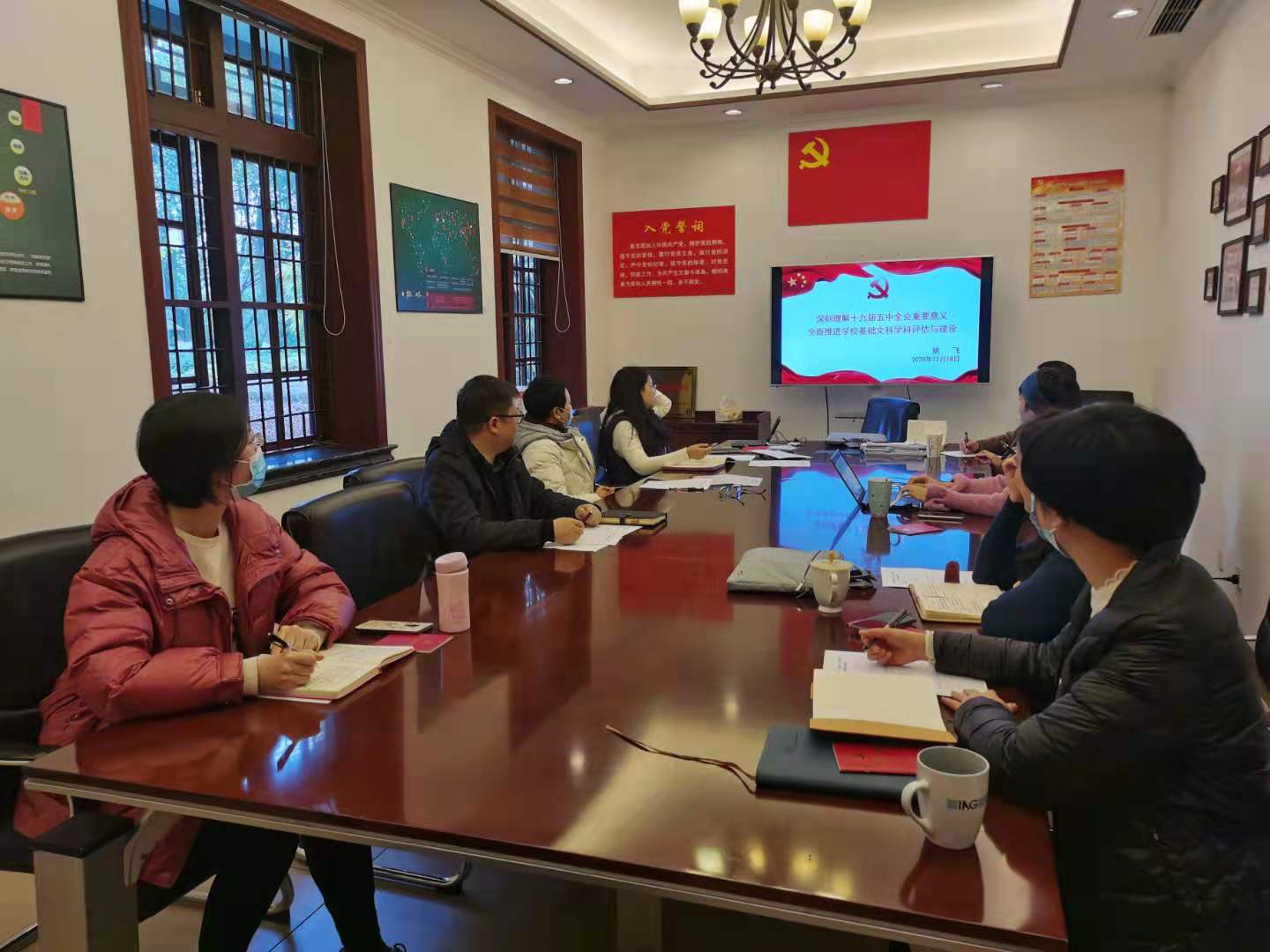 2020年12月18日上午,行政教工支部在文字斋小会议室开展支部主题党日学习,联系党委委员姚飞副院长参加并讲了党课。