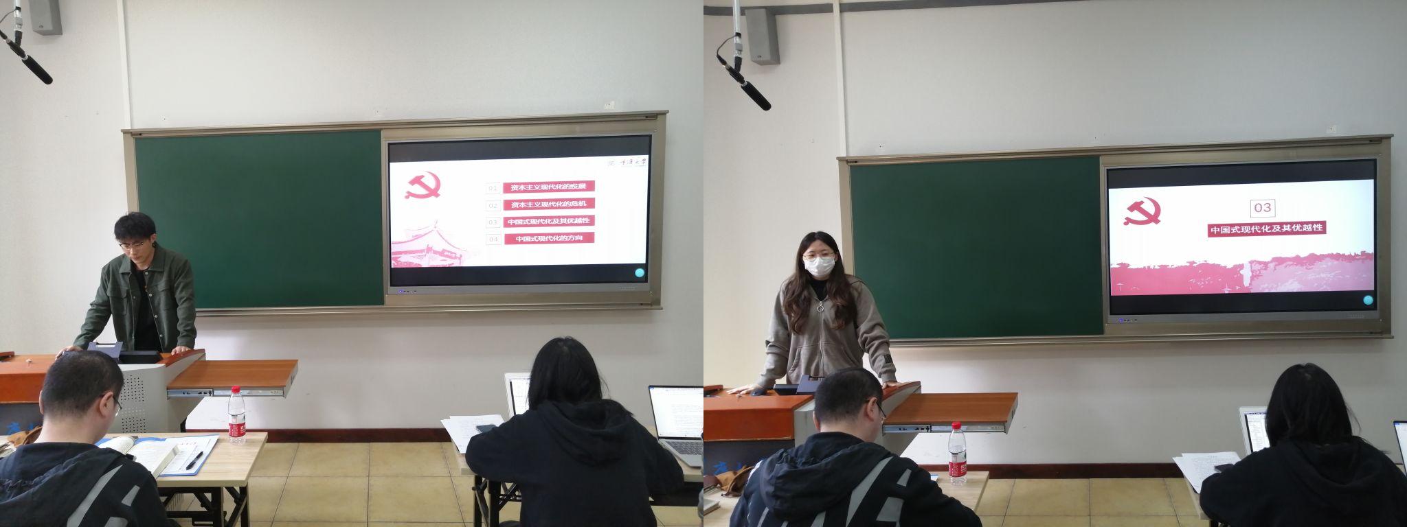 2023年是全面贯彻落实党的二十大精神的开局之年,为使支部同志更好地理解中国式现代化,全面学习、把握、落实党的二十大精神, 3月2日,支部书记肖馨瑶以“中国式现代化”为题,为支部全体党员和入党积极分子上了一次生动的党课。首先,肖馨瑶讲解了党的二十大报告关于“中国式现代化”的相关论述。随后,她围绕中国式现代化的五个内涵进行了细致分析,并指出中国式现代化的五个内涵可看作是对西方现代化与现代性带来的若干问题和困境的反思和回应,进而对中国式现代化的五个维度进行了总结。她谈到,“中国式现代化是人口规模巨大的现代化”突出的是中国的治理方式,中国式现代化中有关共同富裕、和平发展的内涵则从经济发展方式和国际关系层面回应了西方现代化的问题,而对于人与自然和谐共生、物质文明和精神文明相协调的强调最终从哲学与思想层面回应了西方现代性带来的困境与危机。