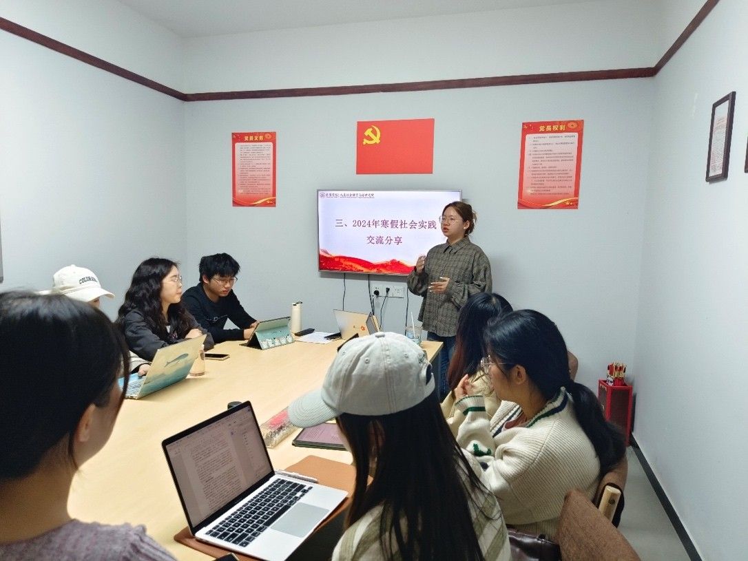随后,支部学生党员从民俗与文化等多个角度就寒假社会实践成果进行分享和交流。