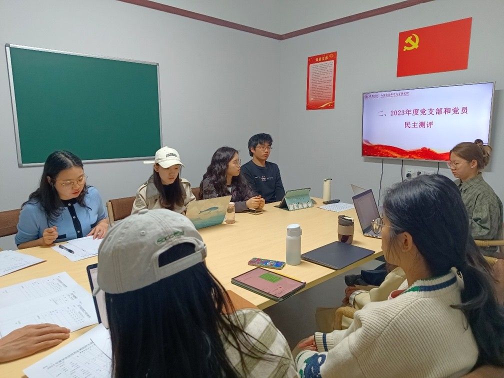 活动伊始,支部副书记赵耀文带领党支部学习了《中共中央政治局召开专题民主生活会 中共中央总书记习近平主持会议并发表重要讲话》的内容,强调了团结奋斗是党领导人民创造历史伟业的必由之路,中国式现代化是党和全体人民共同的事业,是充满风险挑战、付出艰辛努力的宏伟事业。党员同志要廉洁自律,带头落实,发挥好模范带头作用。接着支部书记高宏佳对支部2023年工作进行了总结,全体正式党员对支部和党员进行了民主测评。