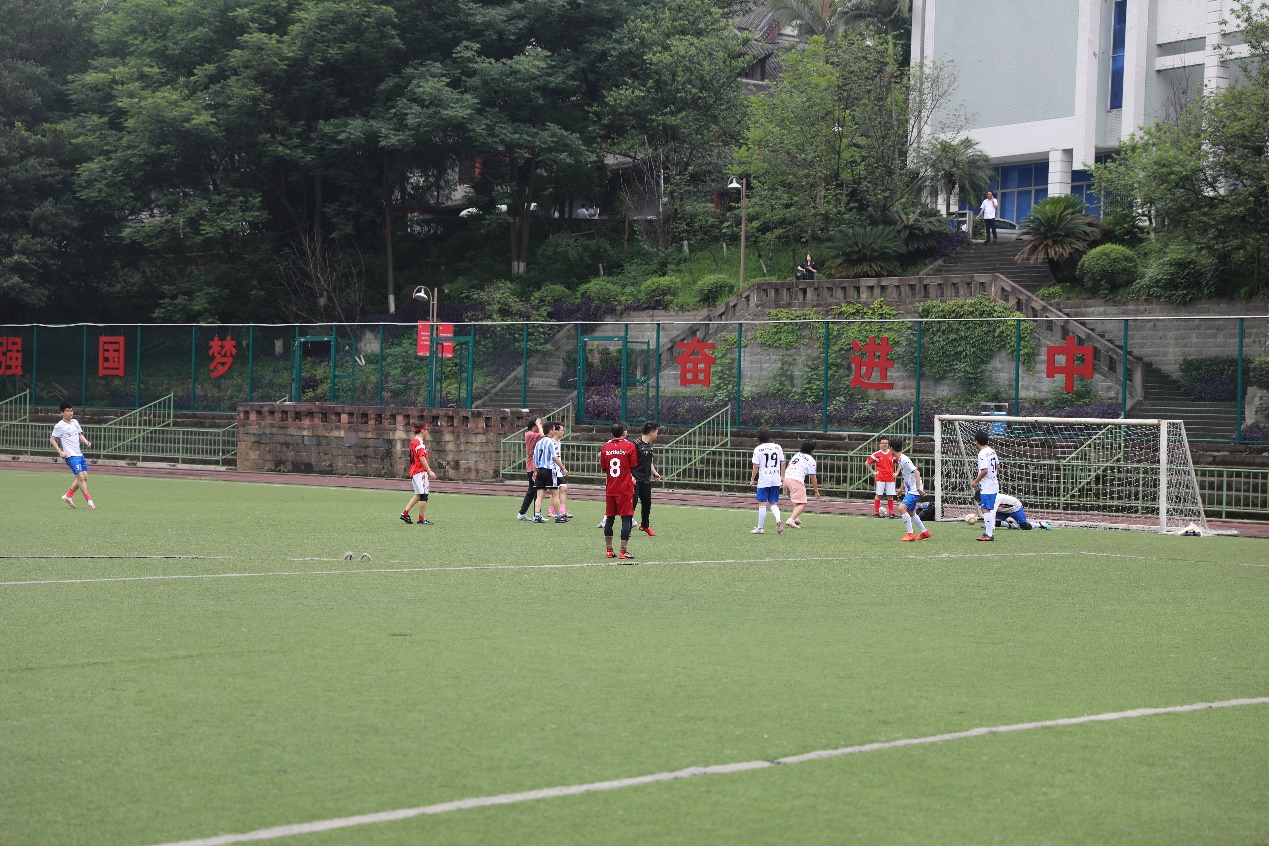本次比赛,教职工队身着红色球衣,学生队身着白色战袍。在主裁判李放春老师的主持下,开赛前首先举行了入场仪式,两队队员互相击掌致意。随后上半场比赛正式开始,由学生队率先发球,经过45分钟的激烈比拼,教职工队率先取得2:1的领先优势。中场休息后,两队易边再战,比赛进入到最为精彩的下半场。两队分别通过精彩的配合各自再进2球,最终伴随着裁判一声哨响,教职工队和学生队的比分定格在4:3。教职工队凭借更为丰富的比赛经验险胜学生队,石绘老师则凭进球数成为本场比赛的最佳球员。