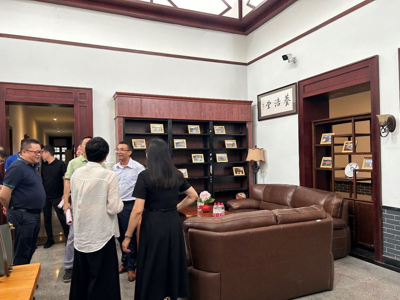 职工小家主场地“养浩堂”停留,考评专家对“养浩堂”进行了仔细的考察,曾佐伶书记也向工作组介绍了“养浩堂”命名的缘起、装饰布置的思路等。