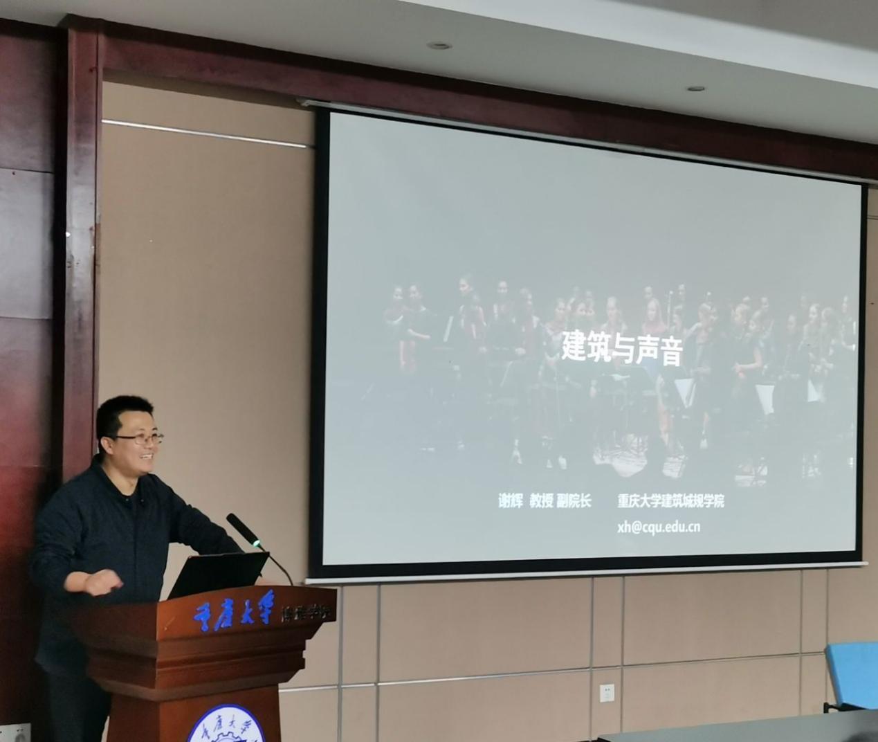 谢辉教授通过播放音频与展示建筑内部空间图片的方式,对比了意大利圣罗马教堂与重庆南山老君洞的声学原理、声学效果,提出了“如何向用户提供个性化声景环境从而提升用户舒适感”的问题,让同学们对建筑的声学效果有了更多的理解与思考。