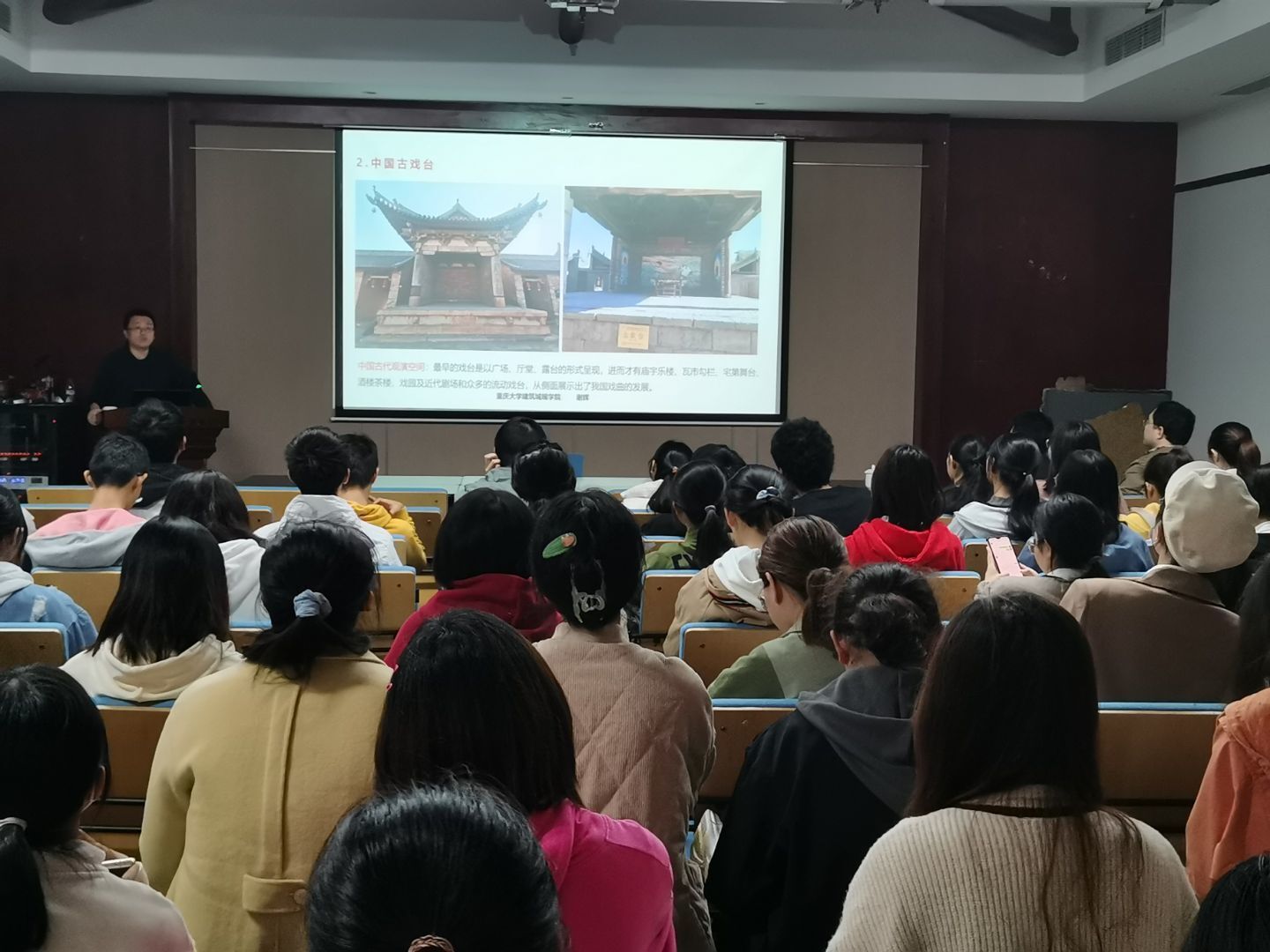 谢辉教授按时间顺序介绍了古罗马剧场、中国古戏台、中世纪圣罗马教堂、维也纳金色大厅、悉尼歌剧院、广州大剧院等世界著名观演建筑的建造思路,让同学们既了解了建筑背后的历史文化故事,还知道了运用建筑可以让声音呈现出更好的效果。
