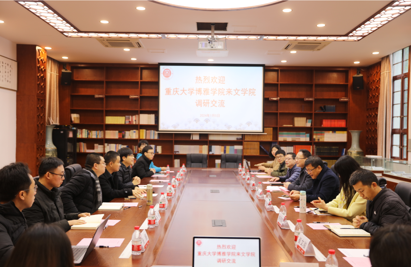 副院长唐杰、中文系主任金浪、哲学系主任张文涛、史学系主任董涛等12人赴西南大学文学院就本科教育教学审核评估工作进行调研交流。西南大学文学院院长王本朝、党委书记胡建军、党委副书记陈雨曦、副院长张春泉、教学办公室主任陈贤明参加座谈交流,会议由张春泉副院长主持。