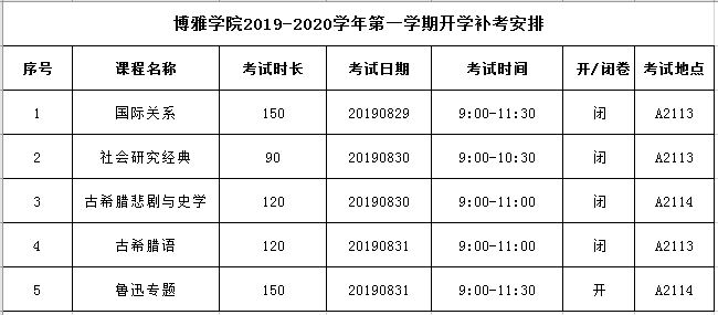 视频网站 2019-2020学年第一学期开学补考安排如下: