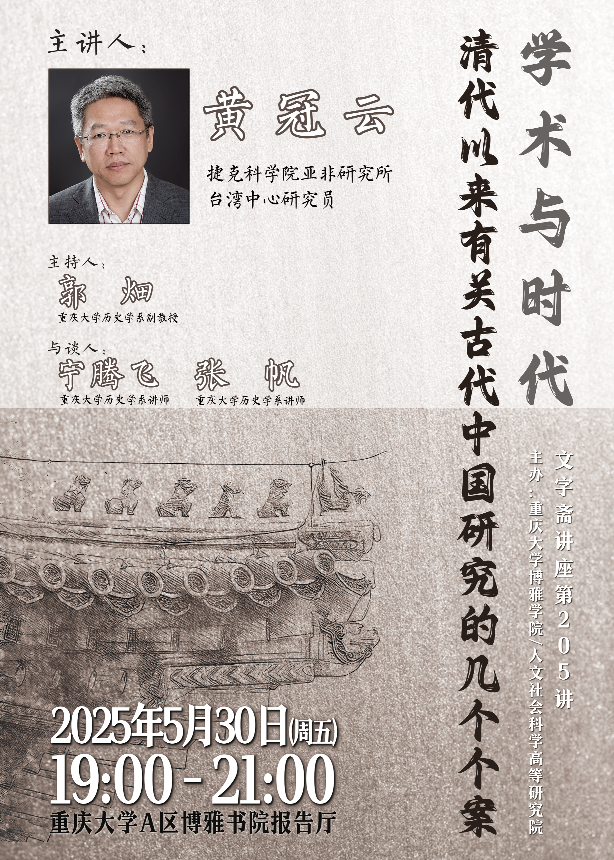 学术思想范式与研究方法,离不开时代背景与时代需求,本讲座拟通过清代 以来有关古代中国研究的几个个案分析,透视学术与时代的密切关系。