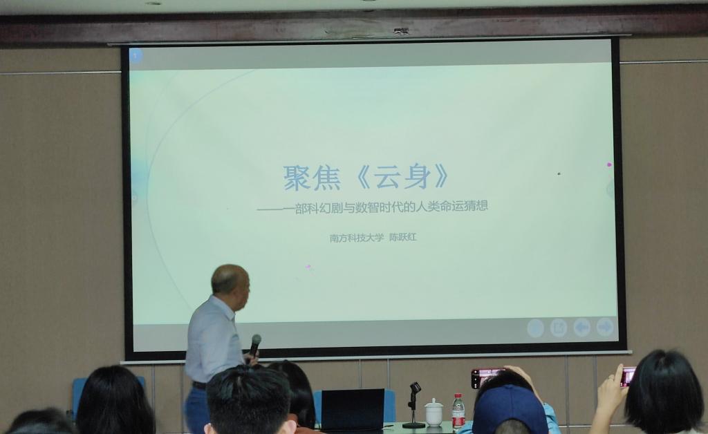 2023年4月27日晚,人文大讲堂系列讲座“聚焦《云身》——数智时代的人类命运抉择”在博雅书院报告厅举行。