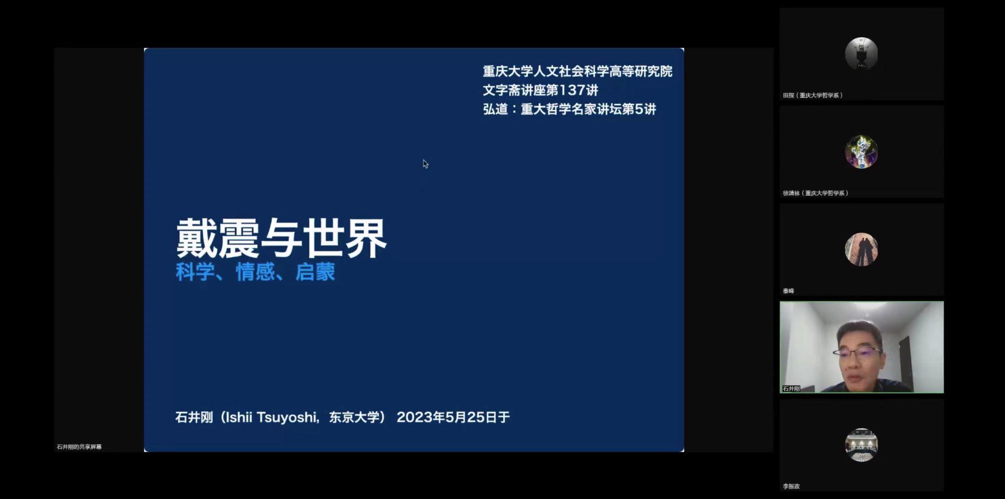 文字斋讲座第137讲,暨“弘道:重大哲学名家讲坛”第5讲:“戴震与世界”在线上腾讯会议顺利举行。